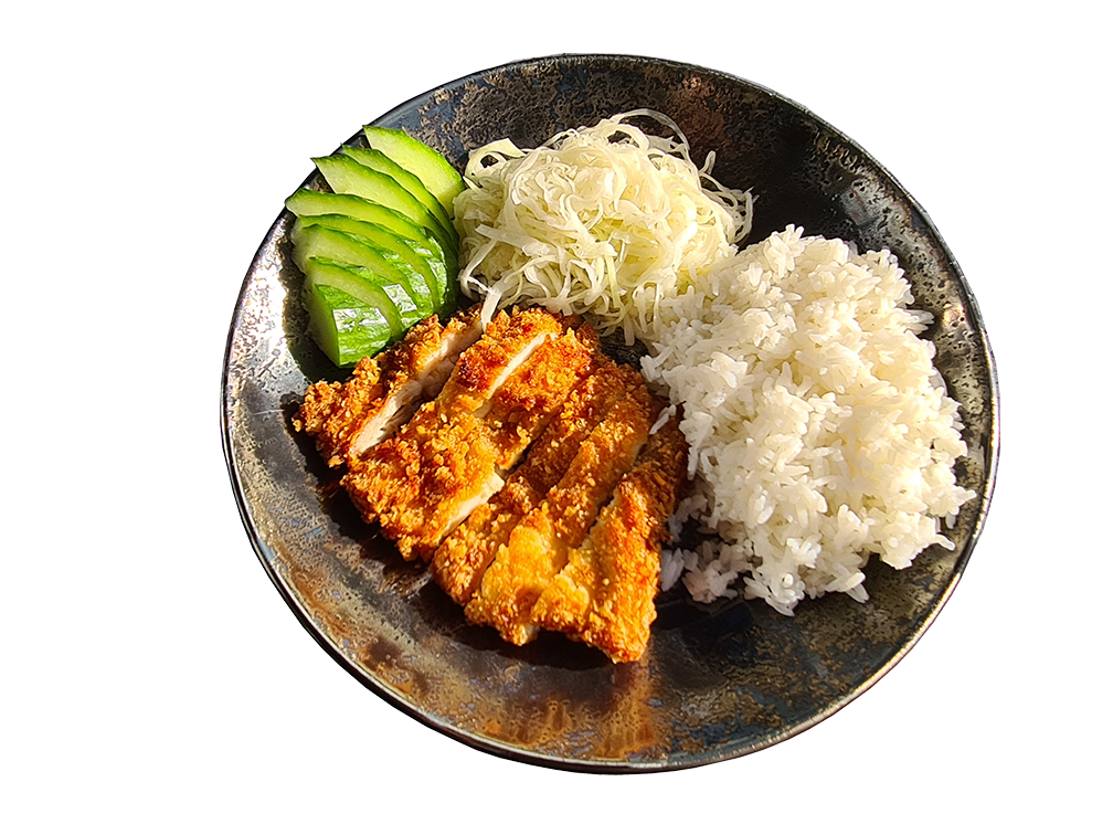 Poulet Pané 13.00€Poulet Pané, Riz, Salade de Choux